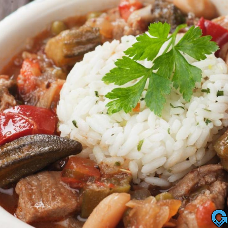 باميه باللحم مع الارز