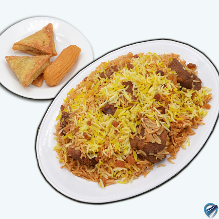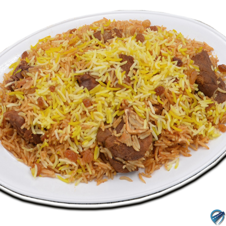 أرز لحم مع التبع طازج وشهي ولذيذ
